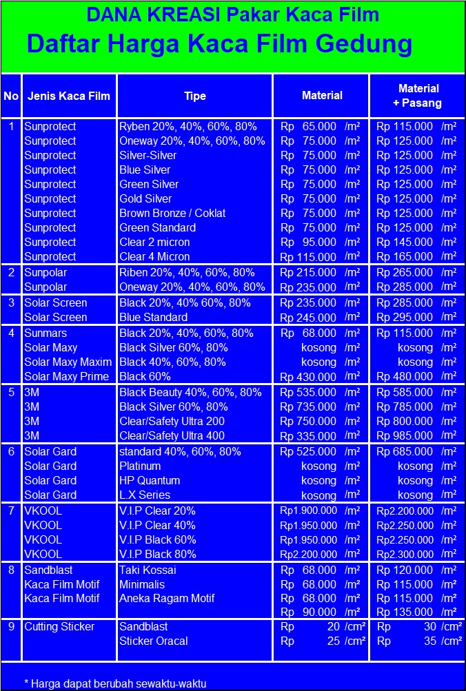 DAFTAR HARGA KACAFILM “DANA KREASI Kacafilm”
